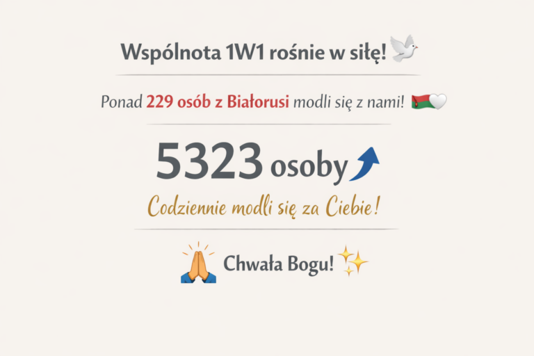 Wspólnota 1W1 rośnie w siłę Od dziś modli się z nami ponad 229 nowych osób z Białorusi To kolejny znak, że modlitwa naprawdę przekracza granice, języki i historie. Nasz wspólny kapitał duchowy to już 5323 osoby Spróbuj to sobie uświadomić.…